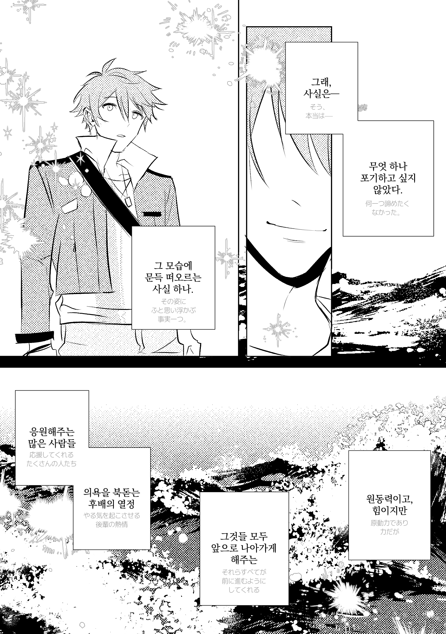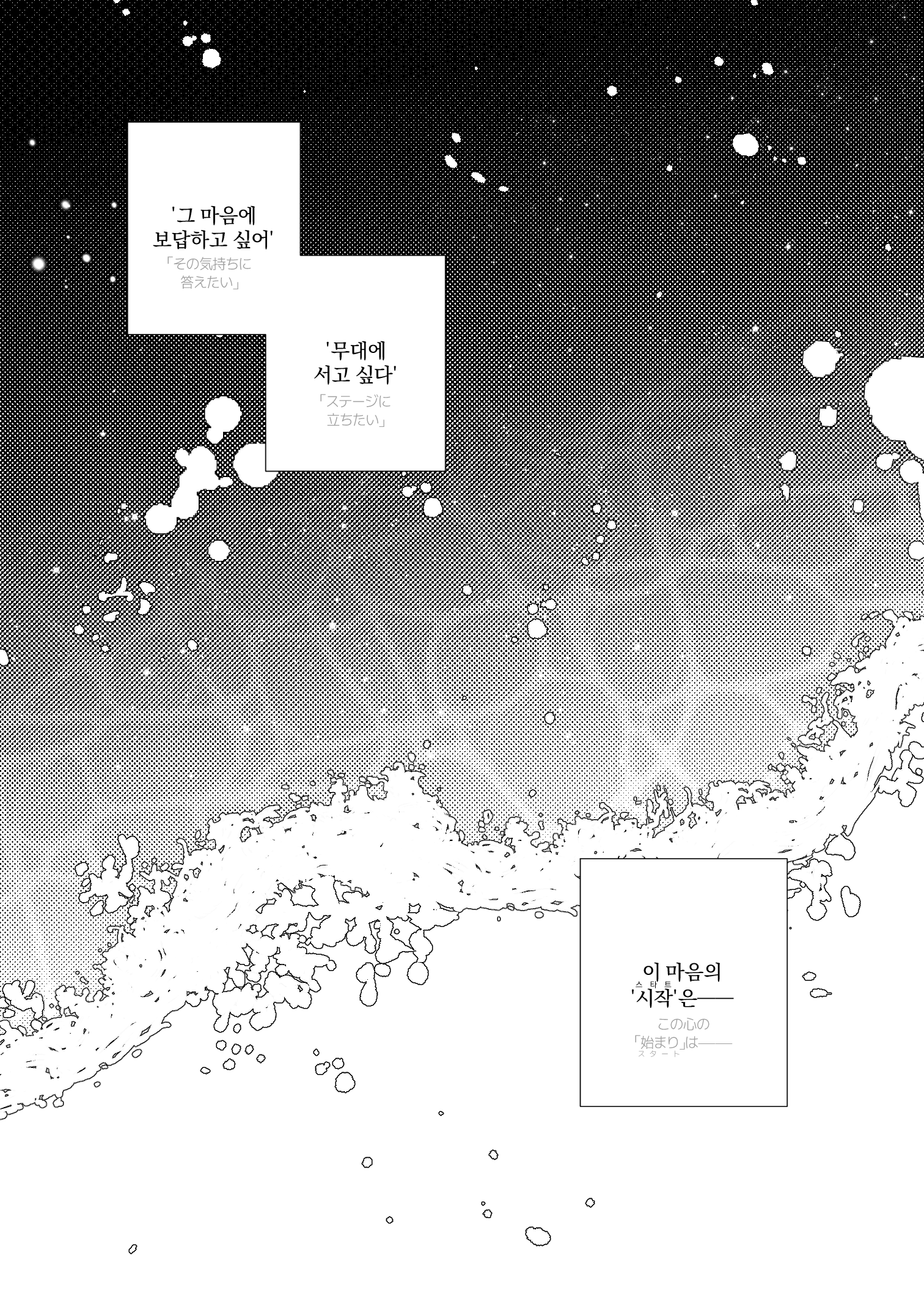 - 만화에 쓰인 독백은 그동안 응원해온 누군가 혹은 이 이야기의 주인공일 수도 있습니다만, 부디 자유롭게 생각해주세요.